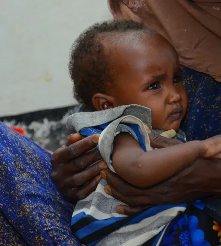This child, who was born in a malnourished state, was lucky that his grandmother was able to walk fifteen kilometers to the clinic for food supplements, says Joël. “Most children die at home. Mothers cannot travel with a malnourished child if they have to take care of other children at home. Generally, the men are not around. They moved to the city to earn money because crops fail and livestock dies from the drought.”