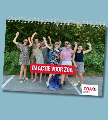 In dit boekje vind je 7 verschillende acties die als ideëen en inspiratie dienen om voor ZOA in actie te komen. ZOA ondersteunt met gastspreker, persoonlijke QR-codes voor de leerlingen en een mooi project. Ook deze informatie is allemaal te vinden in het boekje.