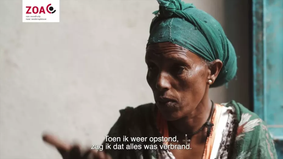 Voor het uitbreken van de oorlog had Atsbiha Gebremariam (45) uit Ethiopië een huis in Hawzen, in de semi-autonome provincie Tigray, Ethiopië. Ze kon haar gezin onderhouden. “Ik verkocht dingen voor in het huishouden op de markt, maar dat is allemaal verbrand na aanvallen op ons dorp”, vertelt ze.