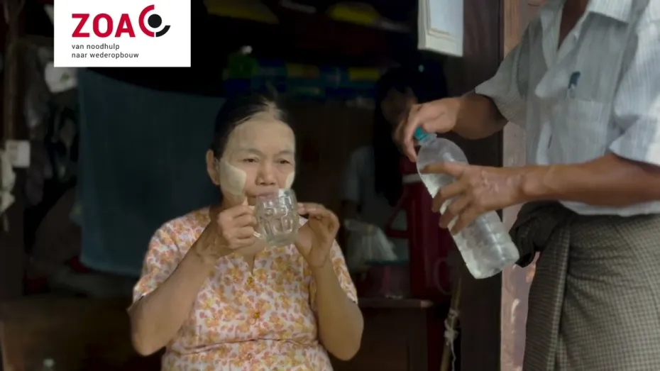 ZOA startte direct met het bieden van noodhulp aan getroffen gezinnen. En dat was hard nodig - bijvoorbeeld voor Daw Than Than Toe, die omdat ze slecht ter been is moeilijk toegang had tot drinkwater. "ZOA gaf aan elk gezin een waterfilter. Nu hoef ik me geen zorgen meer te maken dat mijn kinderen ziek worden."