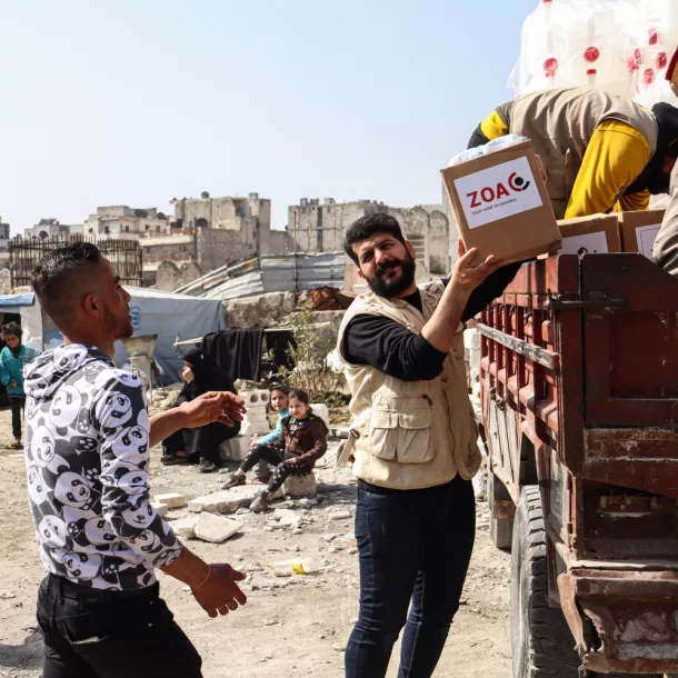 Doordat ZOA al actief was in Syrië kon de noodhulp direct op gang komen, zegt Edwin Visser: “De volgende dag al stonden we klaar met eten, drinken en dekens. Ondertussen heeft bijna iedereen die geen huis meer heeft een plek gekregen in opvangcentra.”